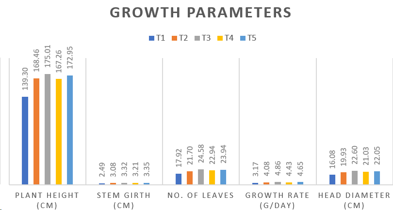 A field experiment was conducted during the spring season of 2025 at the University Research Farm, Koont (Punjab, Pakistan), to evaluate the effectiveness of commercially available biostimulants on the growth, yield, and oil quality of sunflower grown under rainfed conditions. The experiment was conducted using a Randomized Complete Block Design (RCBD) with five treatments and three replications each: T1: Control (basal fertilization only), T2: Wokozim Power Plus (granular application 25 kg ha-1), T3: Maxicrop Liquid Seaweed (foliar spray 5 L ha⁻¹), T4: Small Liquid Packs (foliar spray 2.5 L ha⁻¹), and T5: Liquid Seaweed Extract (foliar spray 4 L ha⁻¹). Growth parameters measured included chlorophyll content, plant height, stem girth, number of leaves, growth rate, and head diameter, while yield attributes comprised number of achenes per head, 1000-achene weight, achene yield, biological yield, and harvest index. Quality parameters such as oil content, fatty acid composition, and seed protein were also analyzed. Results showed significant treatment effects on all parameters. The LSD values of the studied parameters are: Chlorophyll content (3.10), Oil Content (2.6), Palmitic Acid (0.4), Stearic Acid (0.30), Oleic Acid (2.2), Linoleic Acid (2.5), Seed protein Content (1.9), Number of achenes (95), 1000-Achenes Weight (4.10), Achenes Yield (210), Biological Yield (420), Harvest Index (3.8), Plant Height (8.5), Stem Girth (0.22), Number of leaves (2.10), Growth Rate (0.48), Head Diameter (2.4). The tallest plants were recorded in T5 (172 cm), whereas maximum stem girth (3.35 cm) and growth rate (4.63 g day⁻¹) were also associated with foliar biostimulant treatments. T4 produced the highest number of leaves (22.94) and head diameter (22.00 cm), indicating improved vegetative vigor. Yield performance was prominently enhanced by biostimulant application, with T4 generating the greatest number of achenes (1177), the highest 1000-achene weight (68.48 g), achene yield (3727 kg ha⁻¹), biological yield (8311 kg ha⁻¹), and harvest index (48%). In contrast, the control consistently exhibited the lowest values across growth and yield traits. Quality analysis further demonstrated the performance of foliar treatments. T4 and T5 recorded higher chlorophyll content (~47 SPAD) and oil content (~42%), while oleic acid and seed protein increased to 30.7% and 20.82%, respectively. Saturated fatty acids remained stable or slightly reduced, suggesting improved nutritional quality of the oil. Overall, foliar application of seaweed-based biostimulants enhanced physiological activity, assimilate partitioning, and seed composition, ultimately leading to superior crop productivity under moisture-limited conditions.