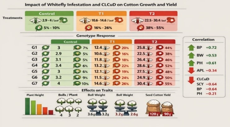 Performance of Different Cotton Genotypes under Different Infestation Levels of Whitefly Populations